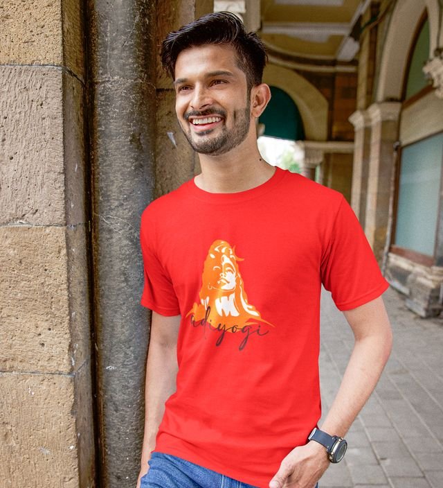 Adiyogi Red Round Neck Cotton Half Sleeved Men T-Shirt with Printed Graphics