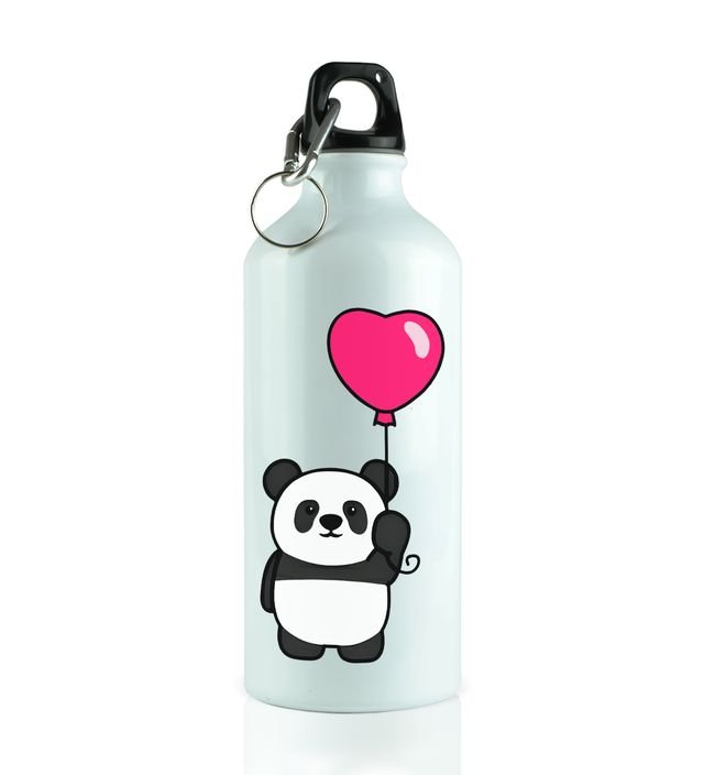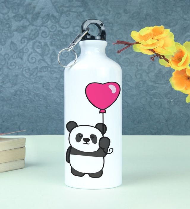 Adorable Baby Panda Holding Heart Balloon Printed Aluminium Water Bottle 600ml