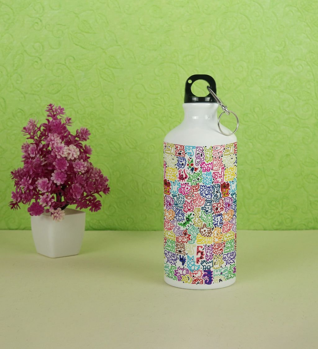 Adorable Mini Monsters in Colorful Vector Graphics on Aluminium Water Bottle 600ml