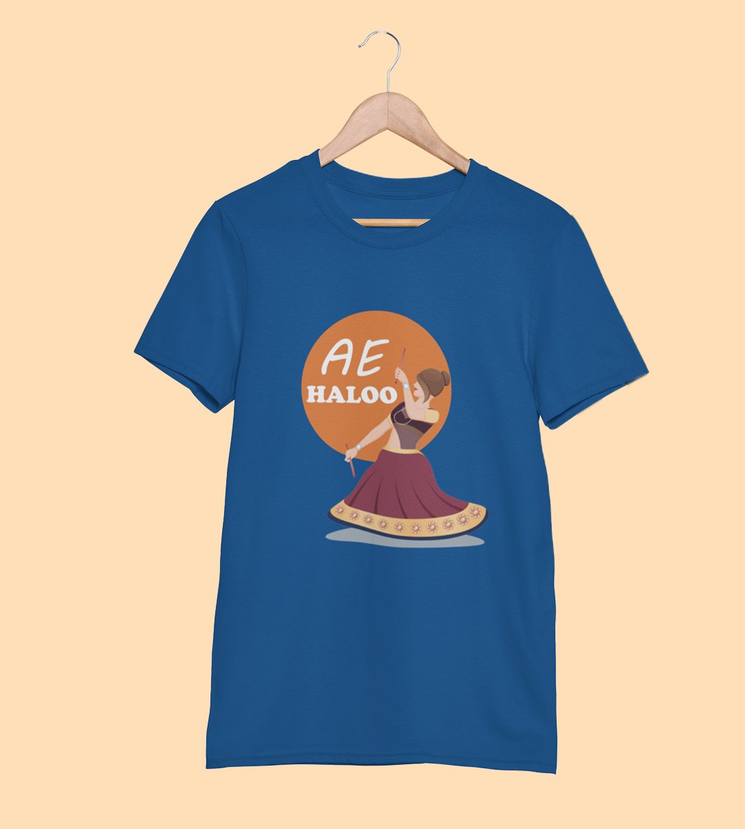 Ae haloo printed unisex adults round neck cotton half-sleeve blue tshirt specially for Navratri festival/ Durga puja