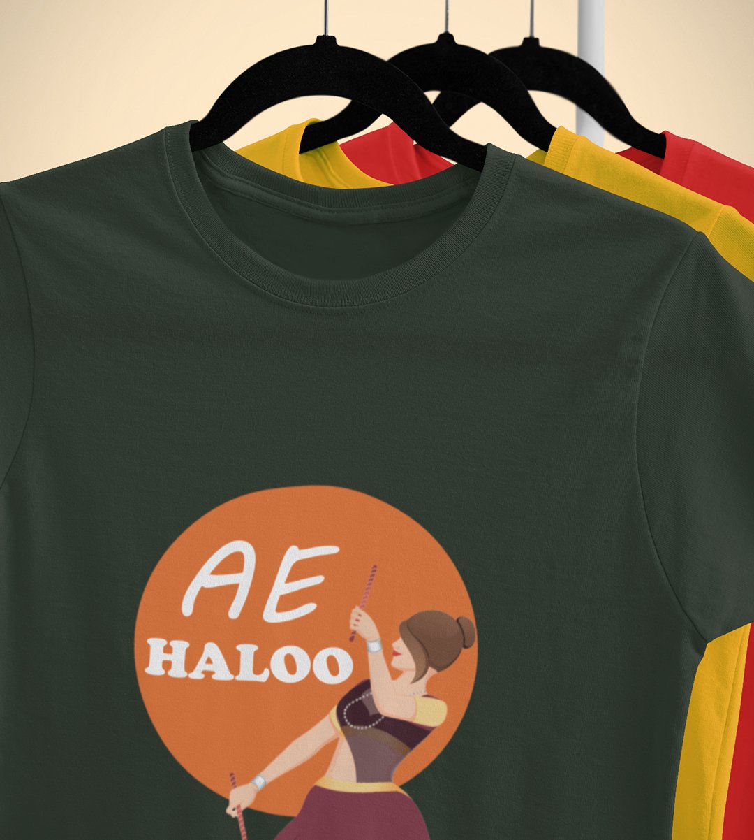 Ae haloo printed unisex adults round neck cotton half-sleeve green tshirt specially for Navratri festival/ Durga puja