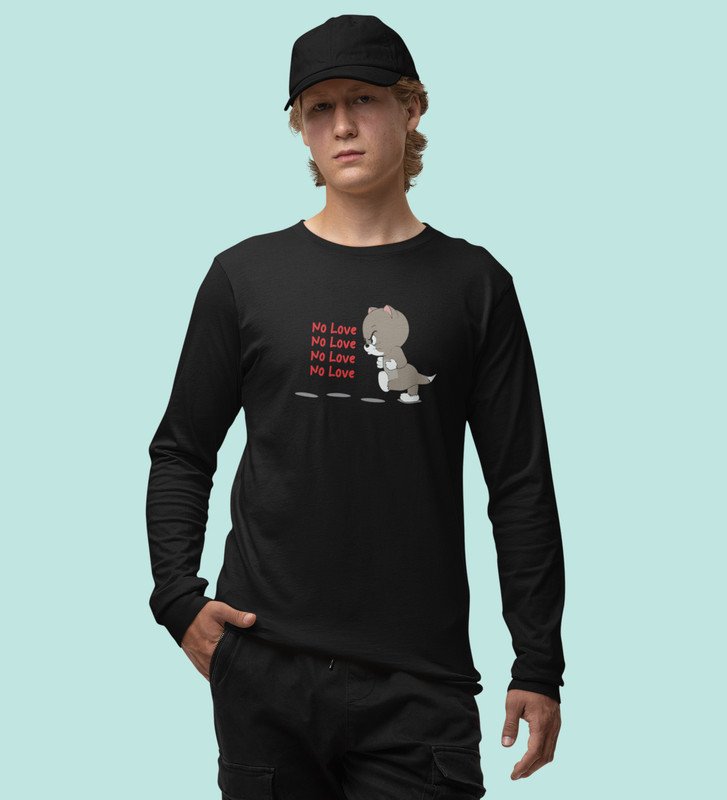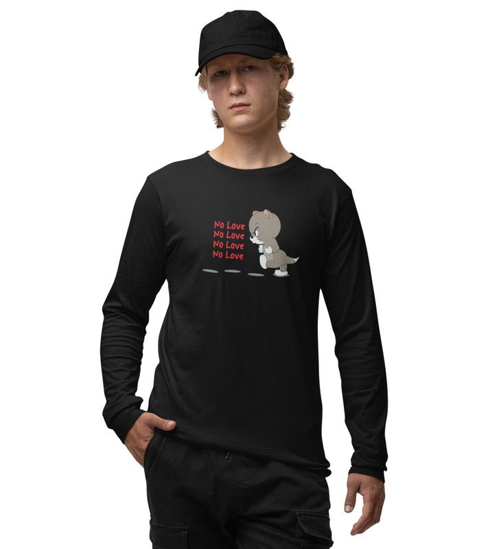 Again No Love : Sublimation Printed (black) Full Sleeve T-Shirt For Singles
