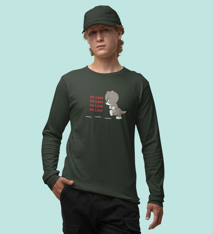 Again No Love : Sublimation Printed (green) Full Sleeve T-Shirt For Singles