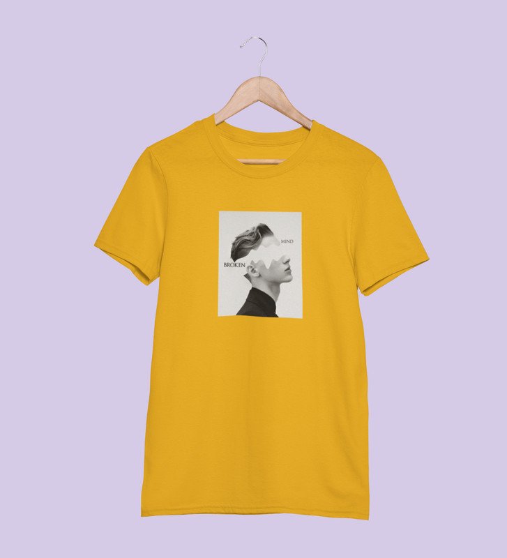 Agony Of Mind,Yellow Street Vibe: Front Printed Round Neck Tee - Men's Urban Statement