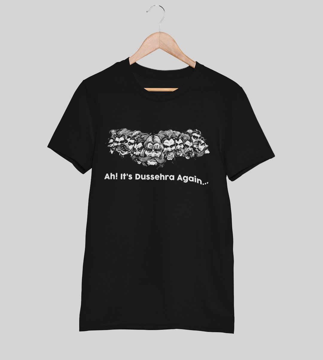 Ah its dussehra again printed unisex adults round neck cotton half-sleeve black tshirt specially for Navratri festival/ Durga puja