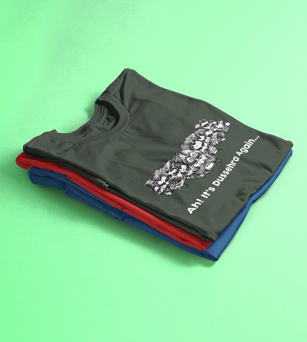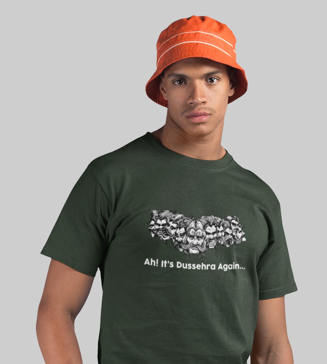 Ah! its dussehra again printed unisex adults round neck cotton half-sleeve green tshirt specially for Navratri festival/ Durga puja