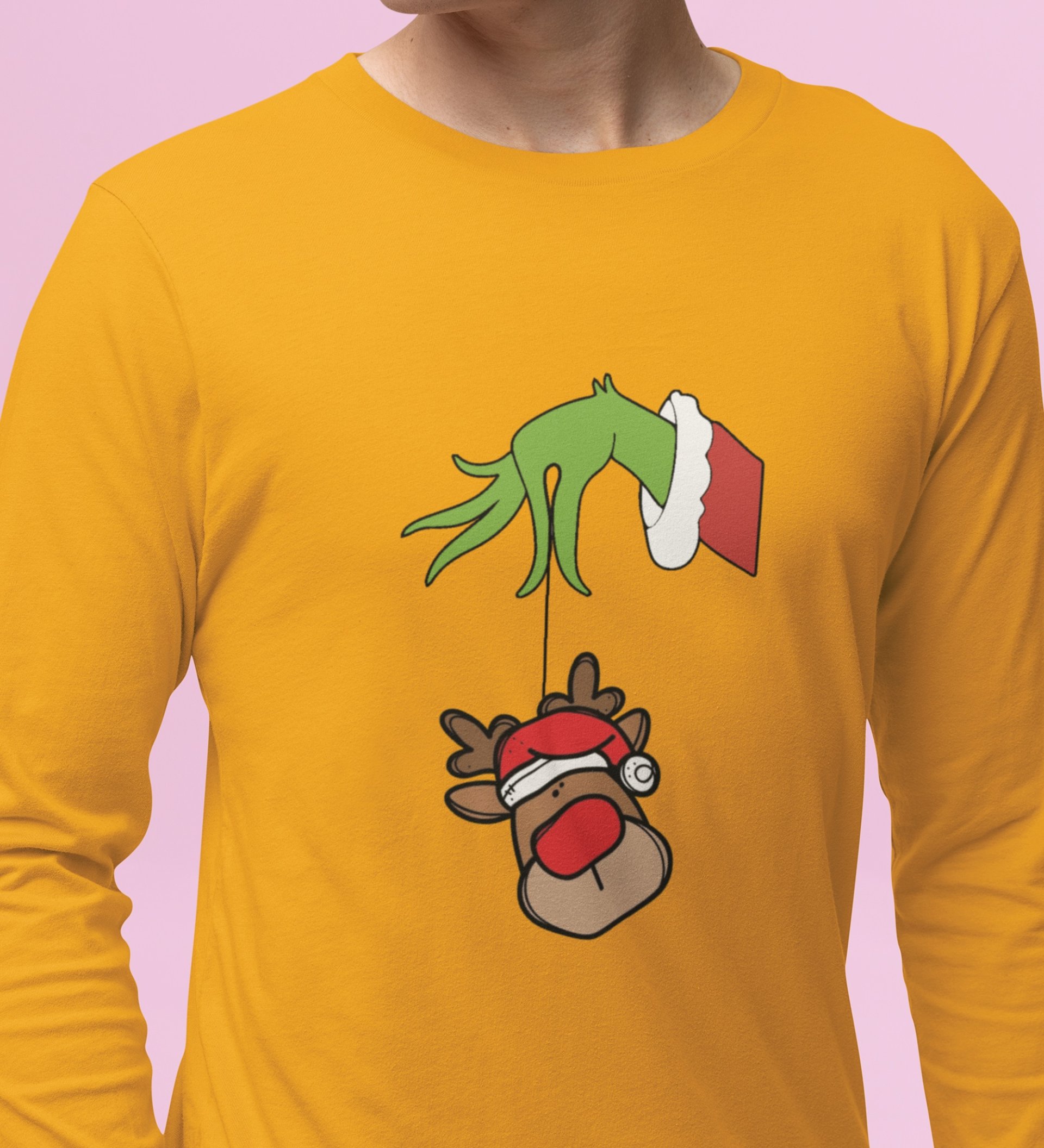 Alien & Reindeer:Yellow Christmas Edition PrintedFull Sleeve T-shirt - Ideal for Spreading Holiday Cheer at Gym, Yoga, and Outdoor Activities