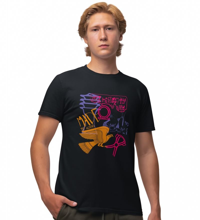 Alientist Printed Round Black Neck TShirt for Men