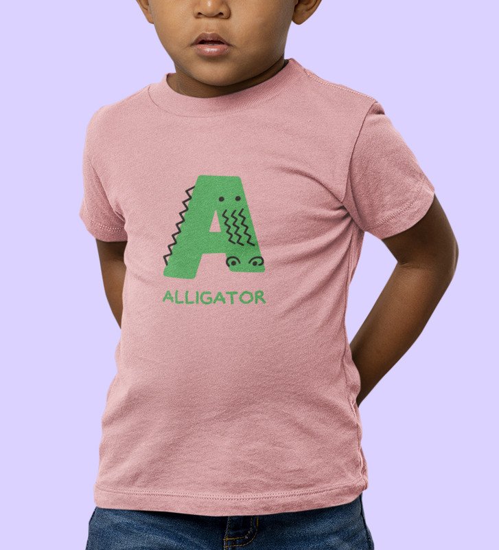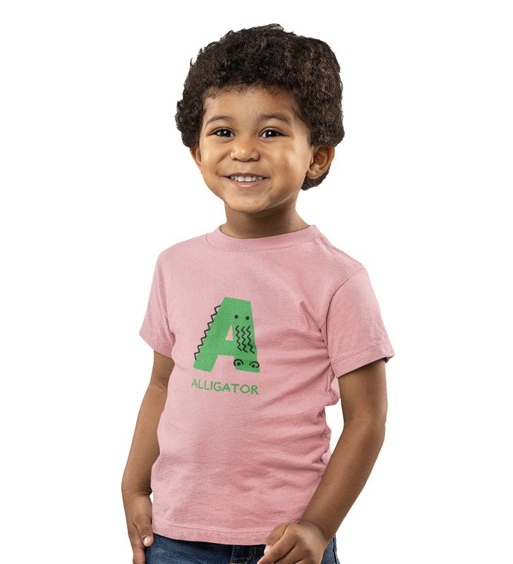 Alligator, Boys Printed Crew Neck Tshirt (Baby pink)