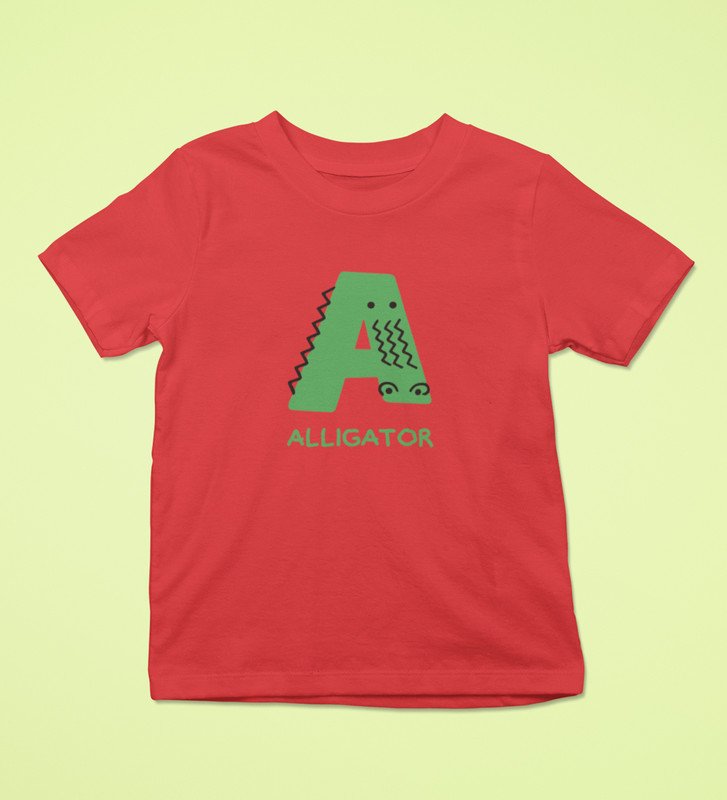 Alligator, Boys Printed Crew Neck Tshirt (Red)