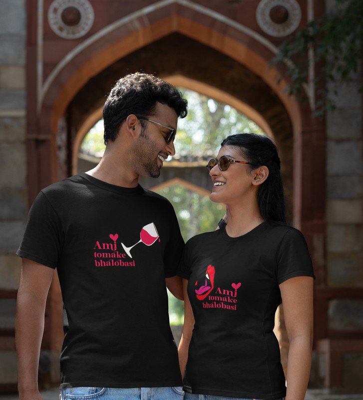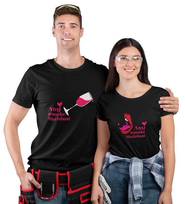 Ami Tomake Bhalobasi Cute Printed Couple (Black) T-shirts