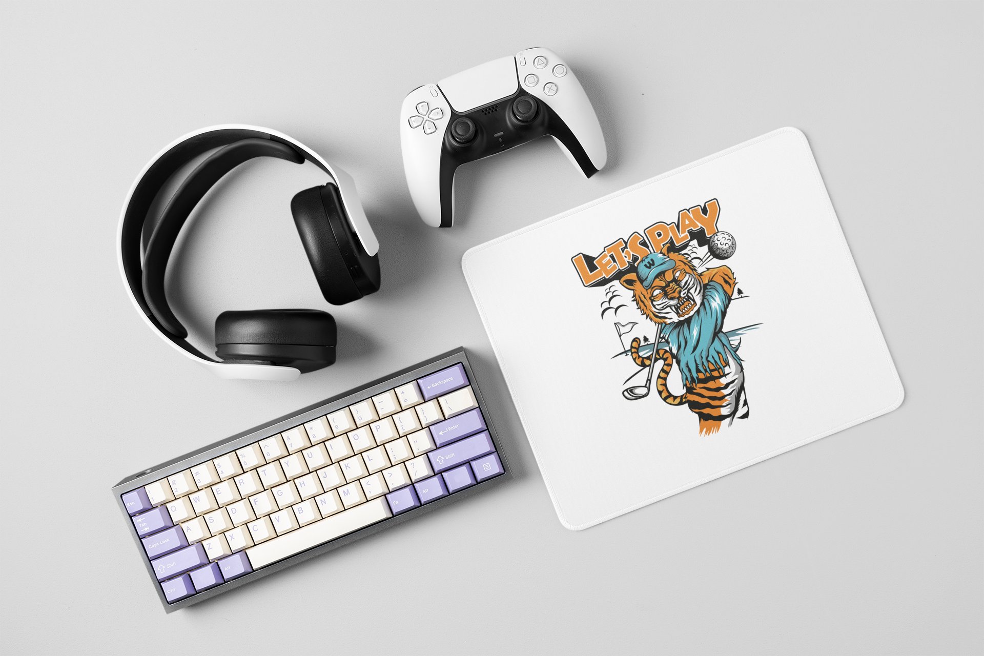 Angrey Tiger Playing Golf (BG Black) - Printed Animated Mousepads