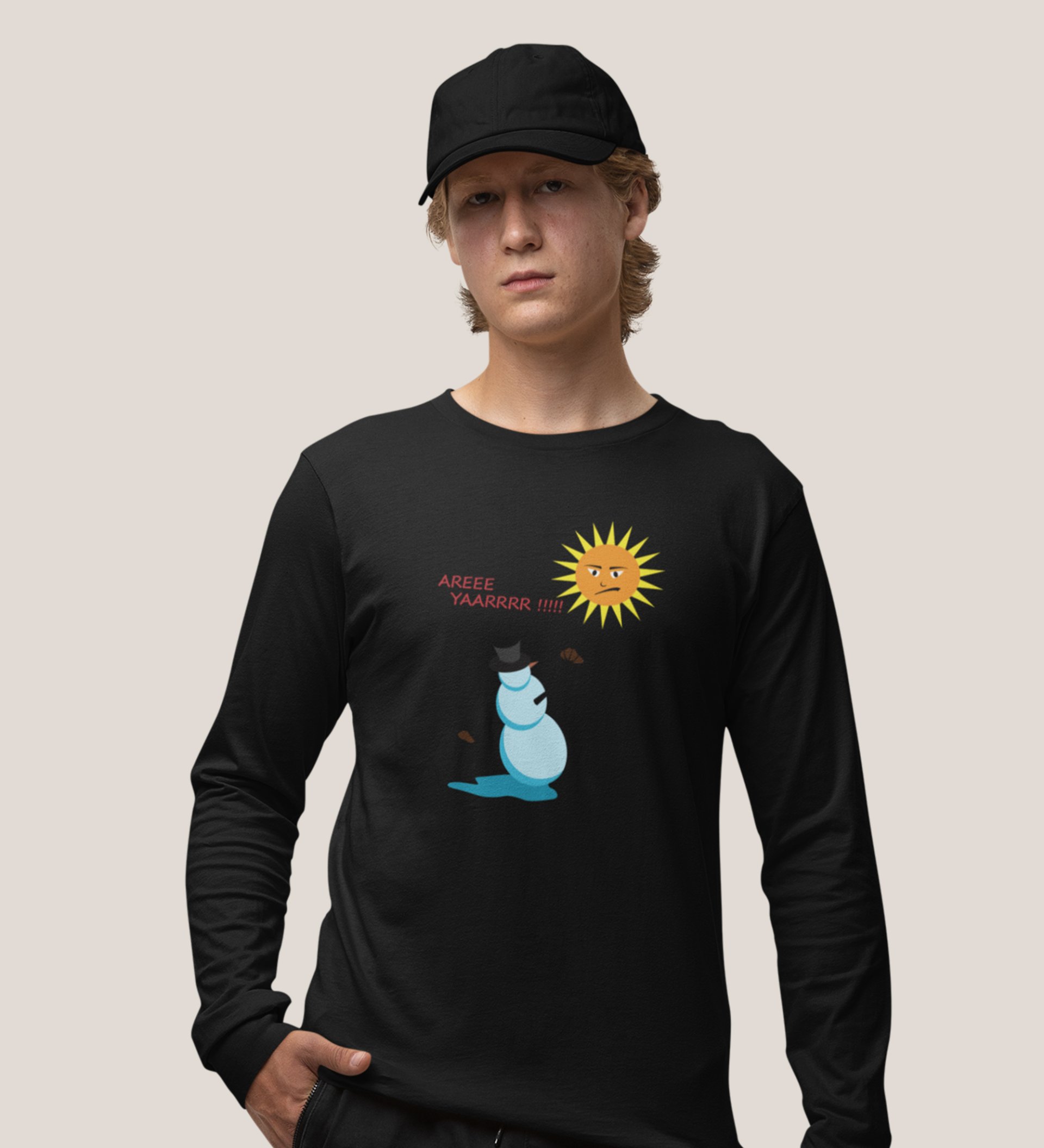 Angry Snowman: Unique DesignerFull Sleeve T-shirt Black Perfect Gift For Christmas Boys Girls