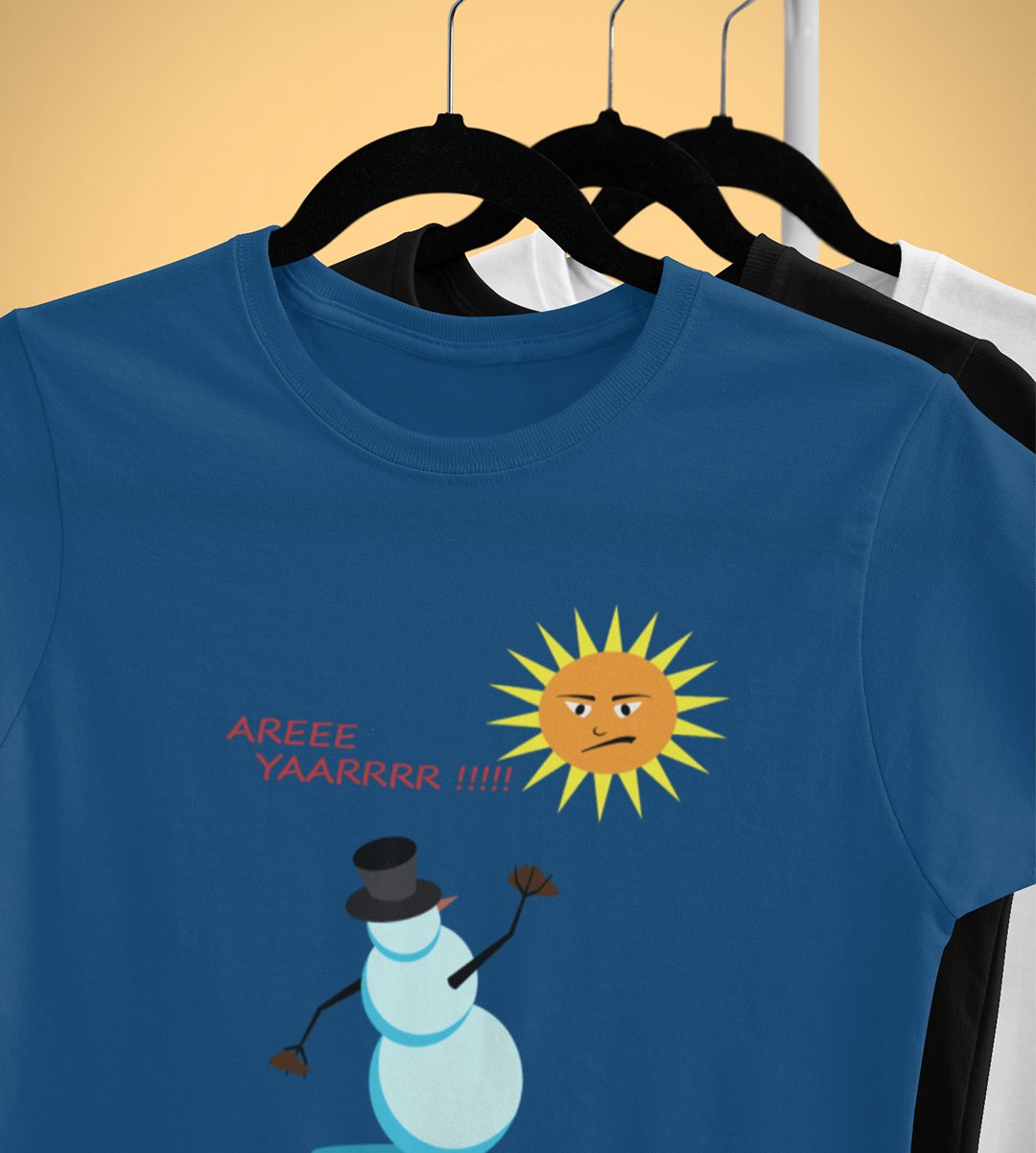 Angry Snowman : Unique Printed T-shirt (Blue) Best Gift For Boys Girls