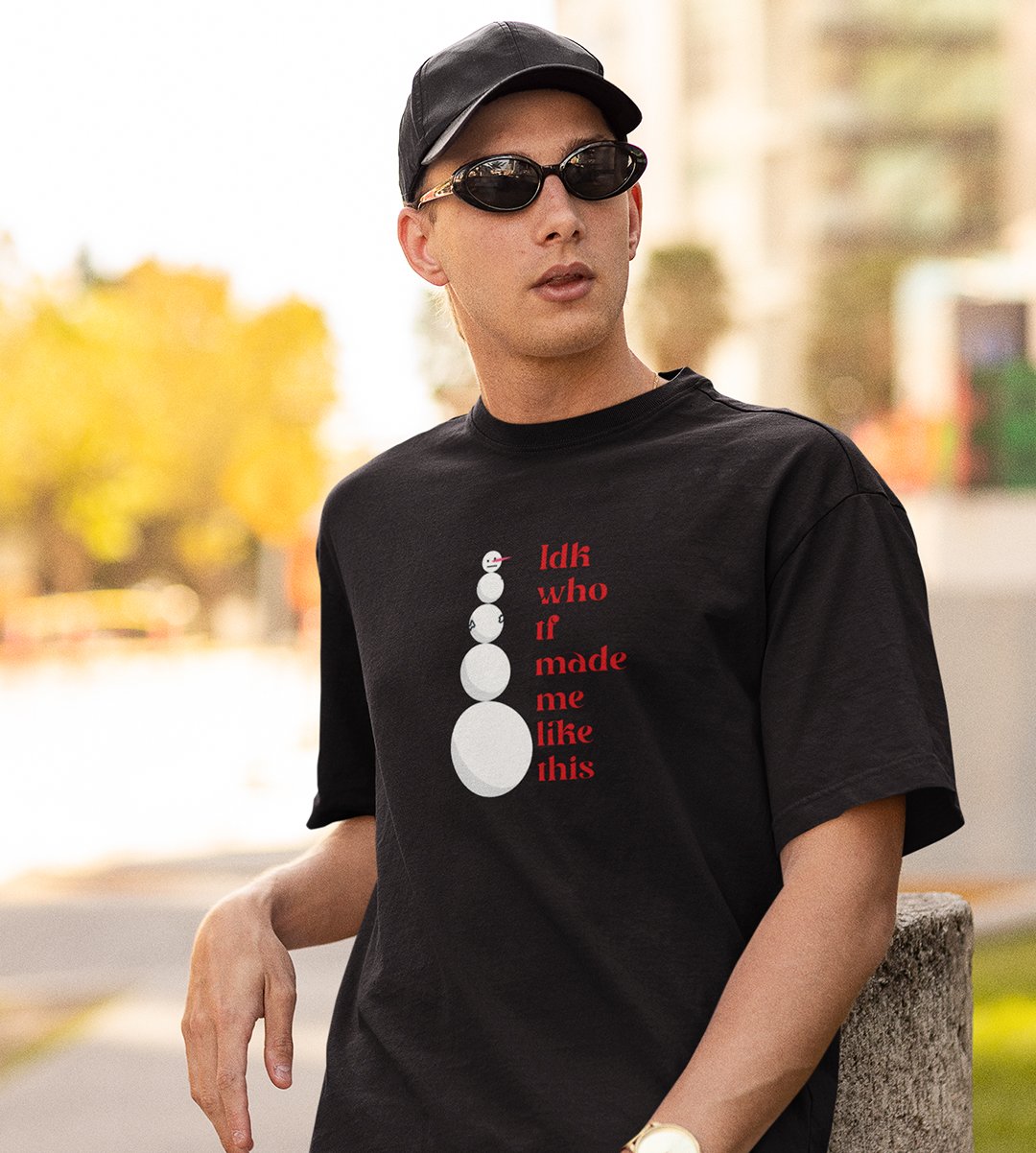Angry Tall Snowman: Cute Snowman Printed T-shirt (Black) Unique Gift For Secret Santa