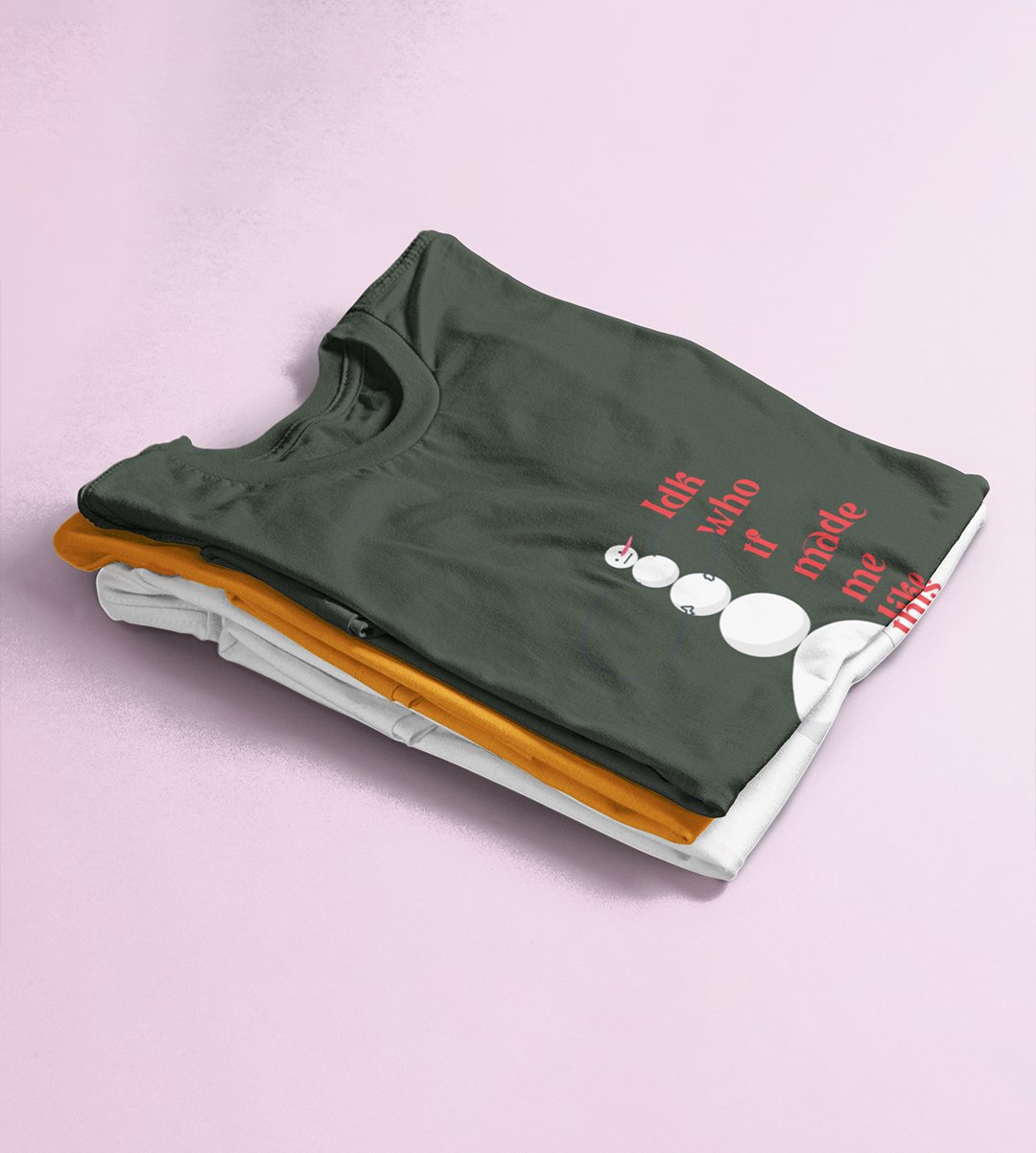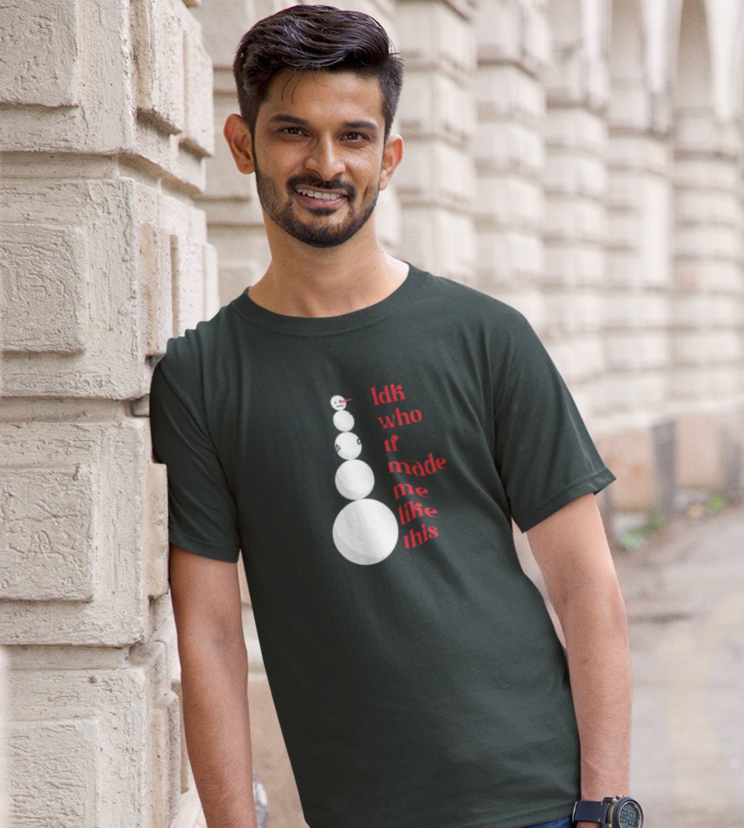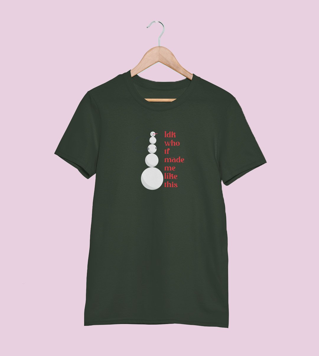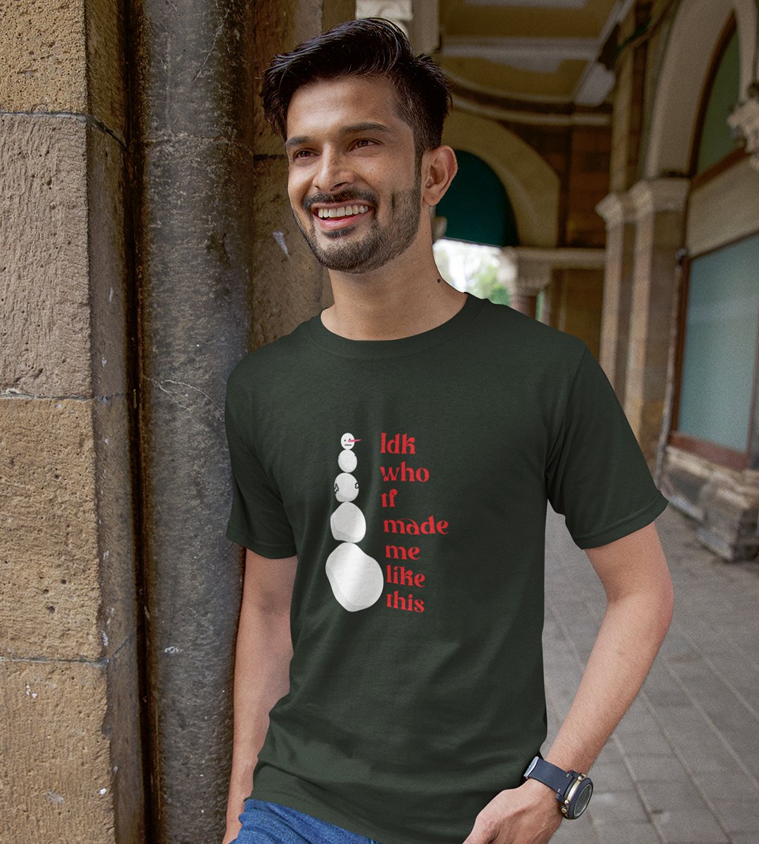 Angry Tall Snowman: Cute Snowman Printed T-shirt (Green) Unique Gift For Secret Santa