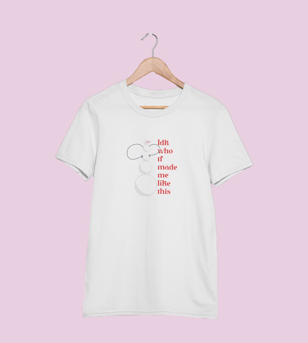 Angry Tall Snowman: Cute Snowman Printed T-shirt (White) Unique Gift For Secret Santa