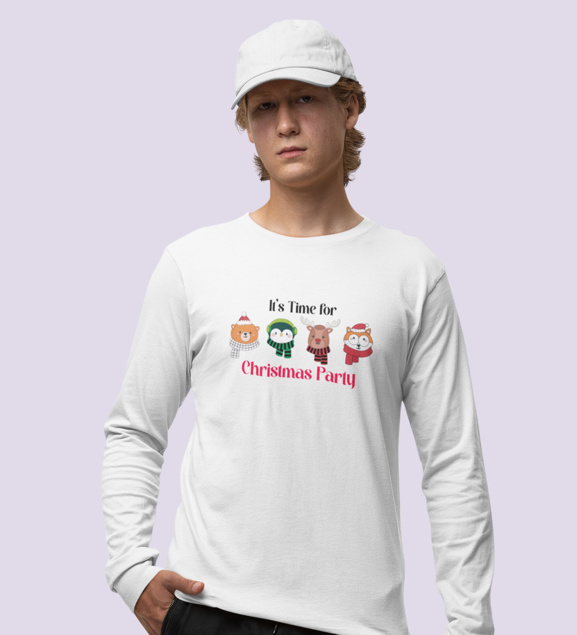 Animal Christmas Party: Unique DesignerFull Sleeve T-shirt White Best Gift For Boys Girls