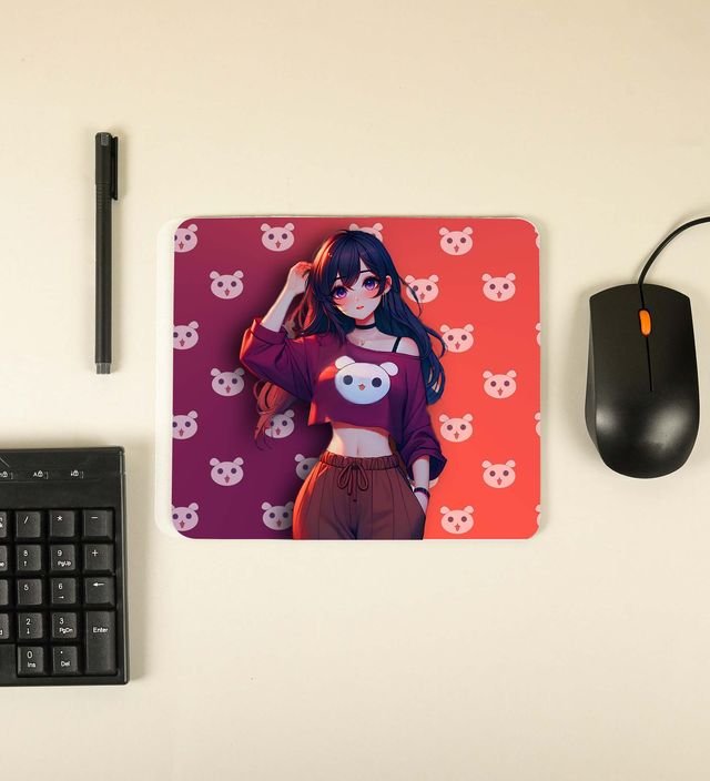 Anime Girl With Fun Icon Pattern Art Printed Mousepad