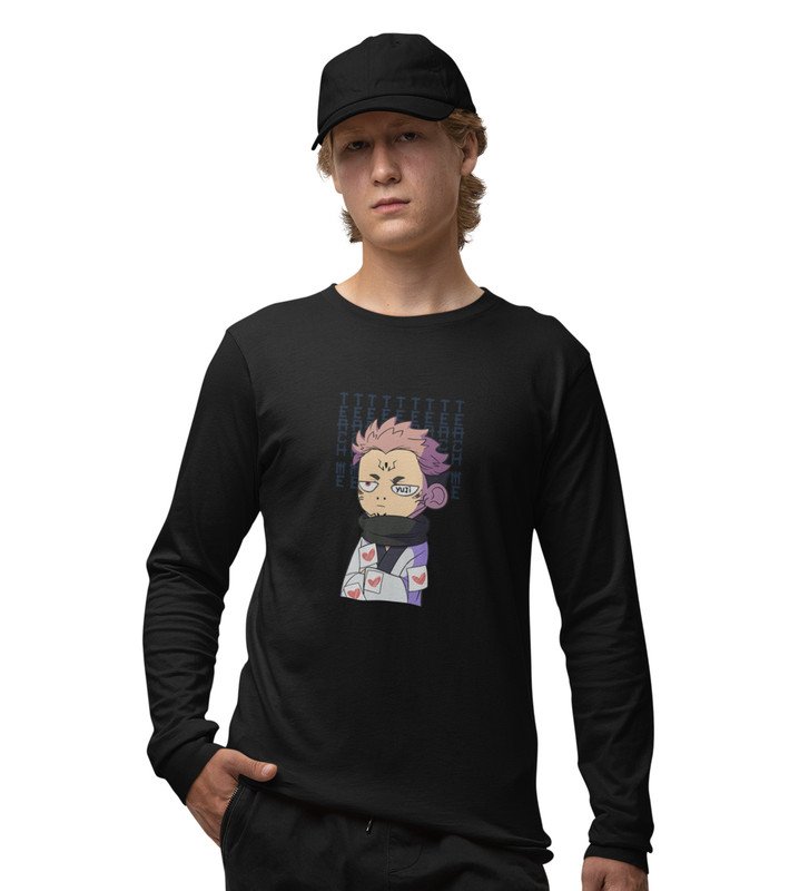 Anime Itadori Printed Cotton Black Full Sleeves Tshirt For Mens and Boys