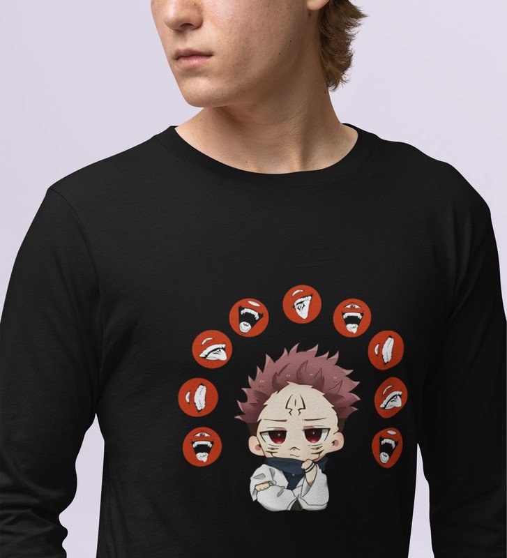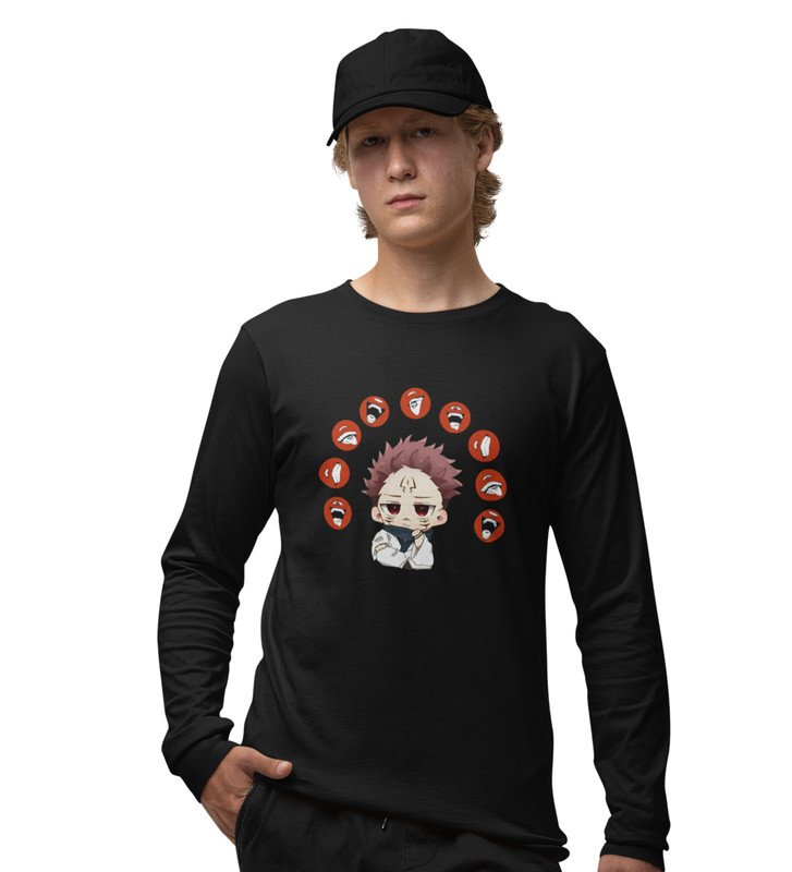 Anime Printed Itadori Cotton Black Full Sleeves Tshirt For Mens and Boys