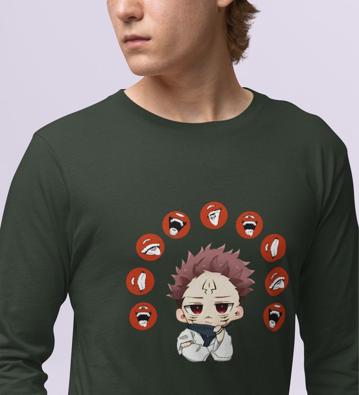 Anime Printed Itadori Cotton Green Full Sleeves Tshirt For Mens and Boys
