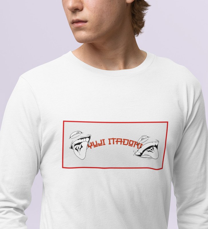 Anime Printed Itadori Cotton White Full Sleeves Tshirt For Mens and Boys