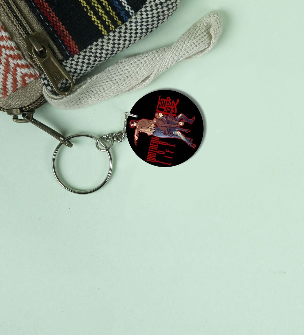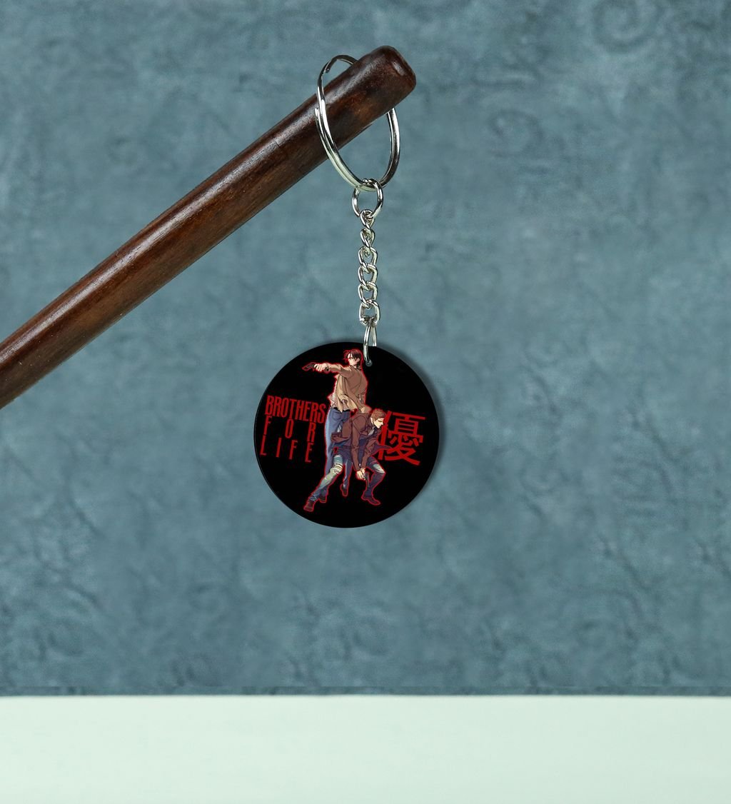 Anime Style Brother Bond In Action Printed Round Keychain Pack of 2