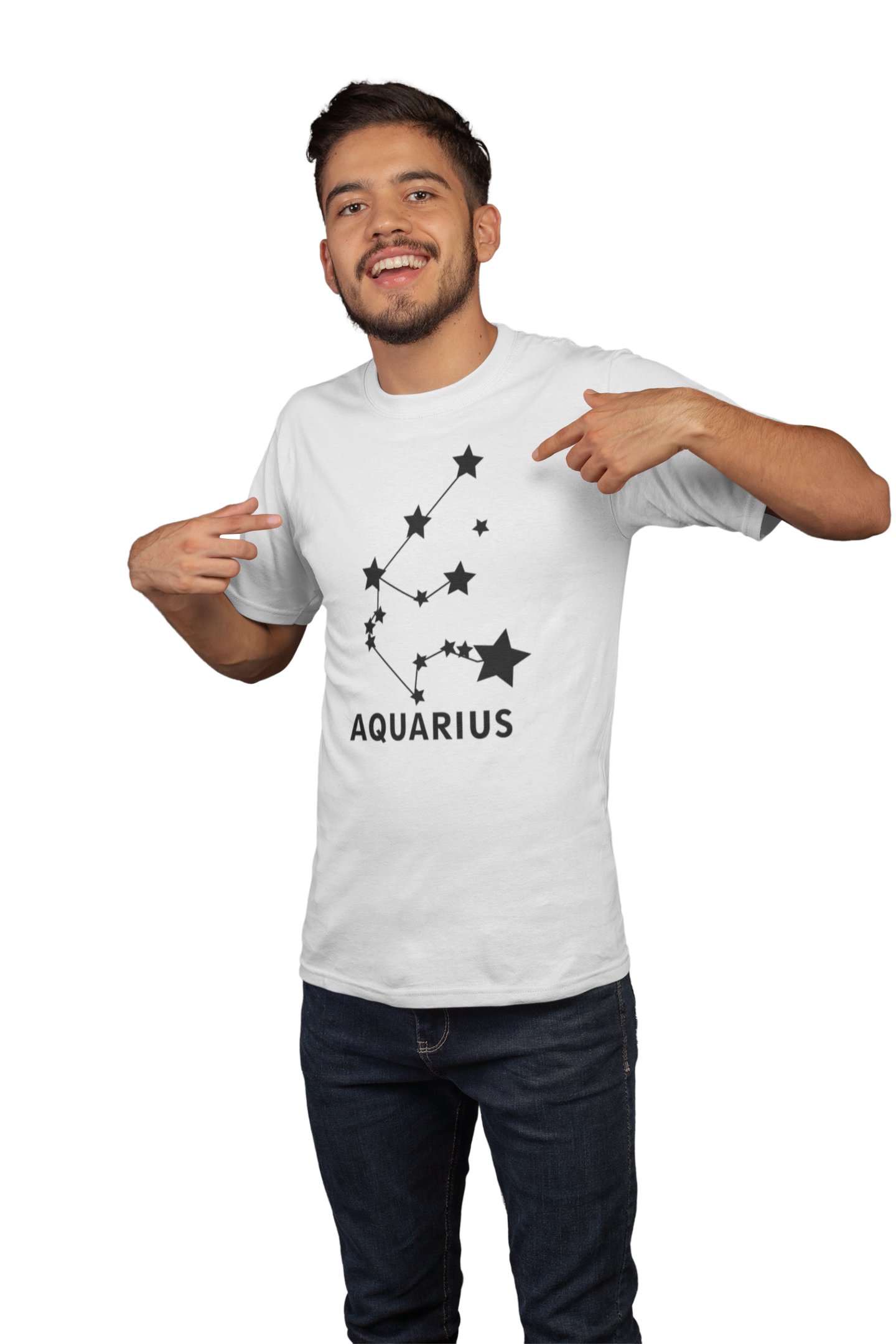 Aquarius stars (BG Black) (White T) - Printed Zodiac Sign Tshirts - Made especially for astrology lovers people