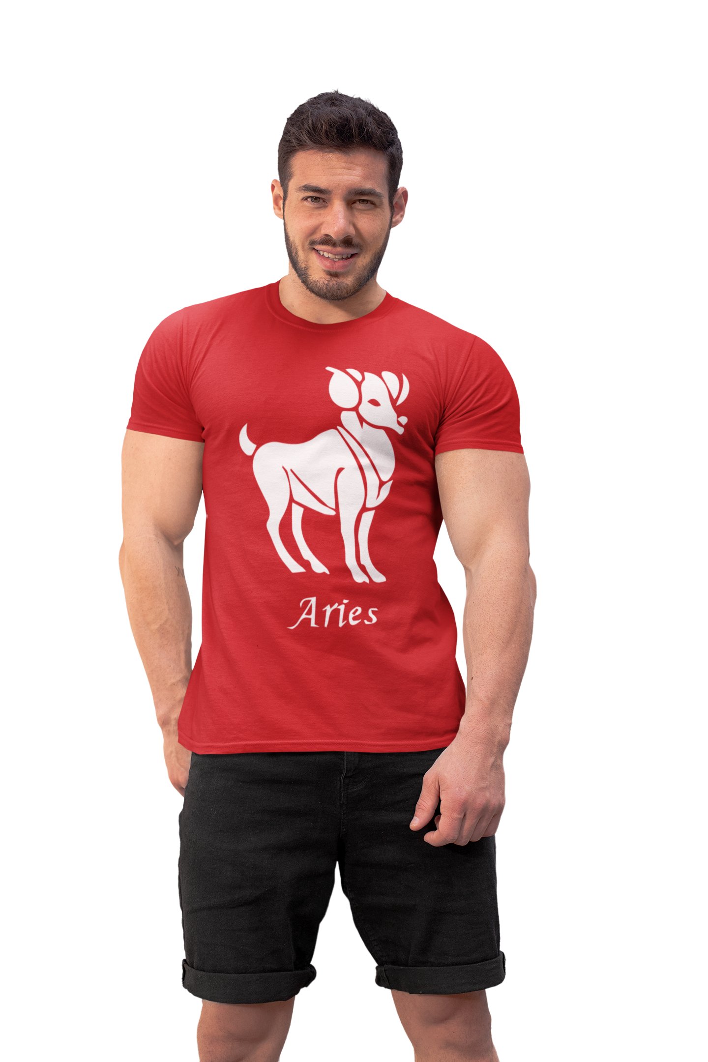 Aries (BG white) (Red T) - Printed Zodiac Sign Tshirts - Made especially for astrology lovers people