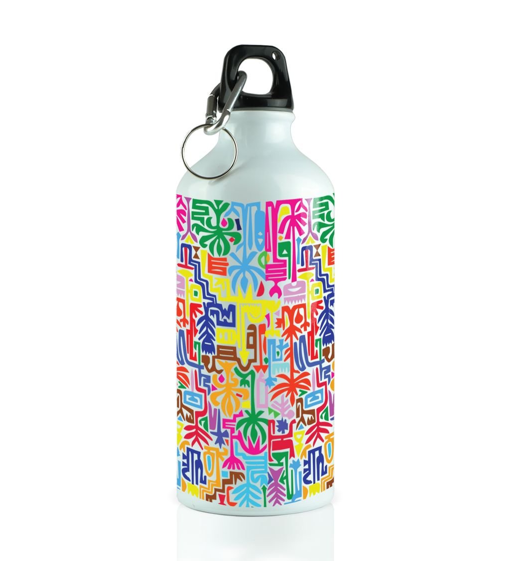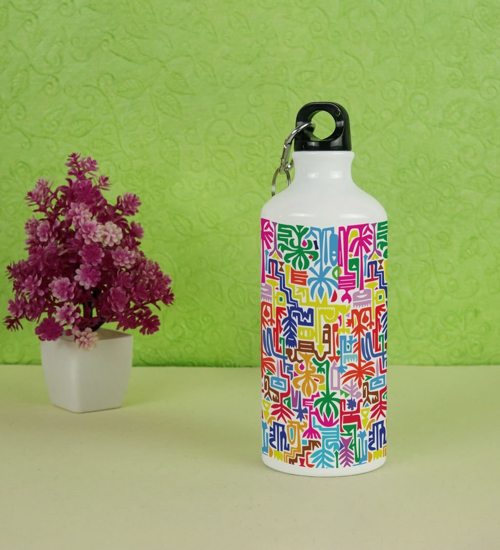 Artful Hydration: Colourful Plant and Tree Abstract on Aluminium Water Bottle 600ml