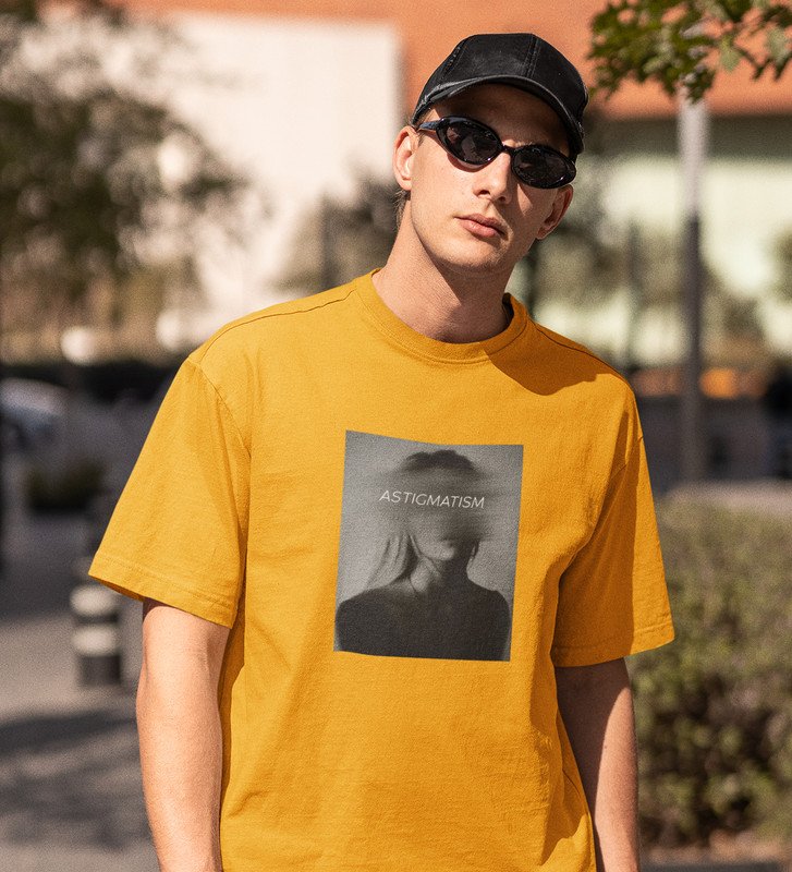 Astigmatism, Yellow Bold Impressions: Front Printed Men's Oversized Tee - City Style Defined