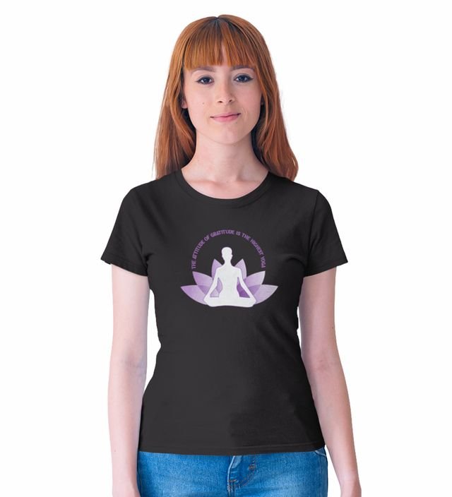 Attitude Of Gratitude Black Round Neck Cotton Half Sleeved WomenT-Shirt with Printed Graphics