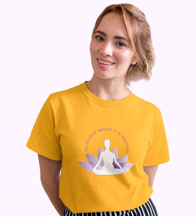 Attitude Of Gratitude Yellow Round Neck Cotton Half Sleeved Women T-Shirt with Printed Graphics