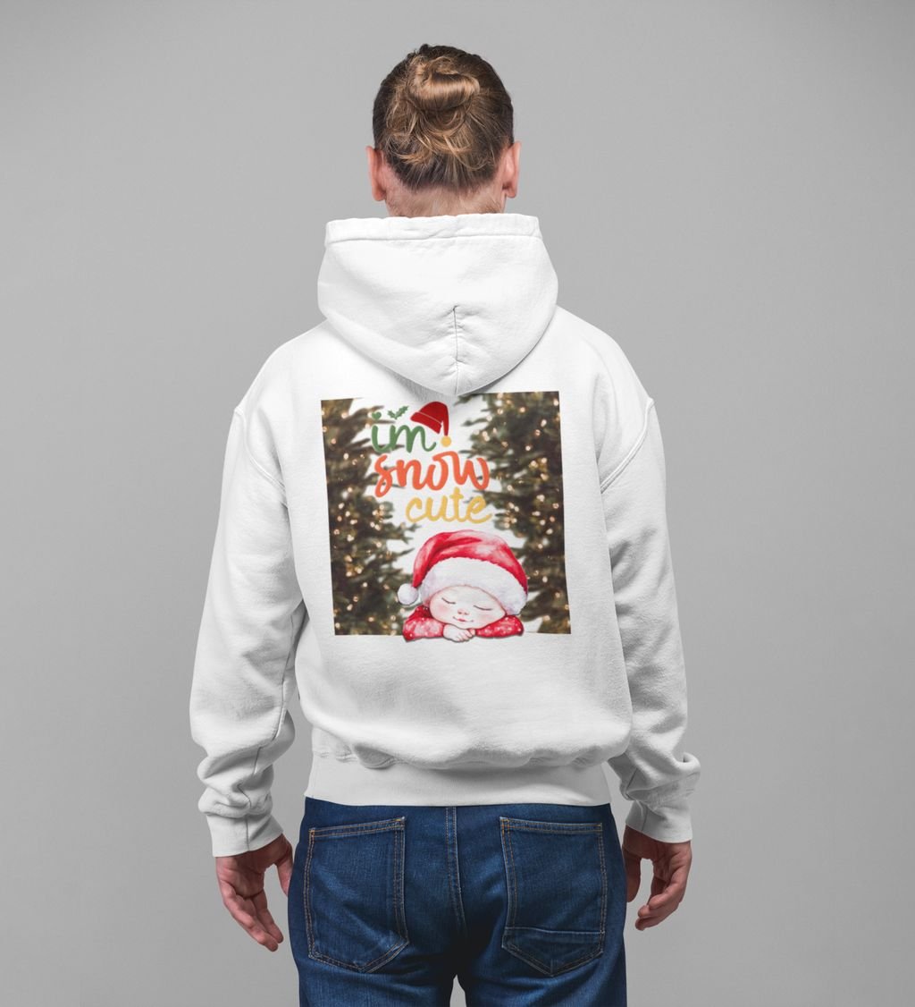 Baby Napping in a Santa Hat with My Snow Adorable Festive Design Printed White Cotton Hoodie
