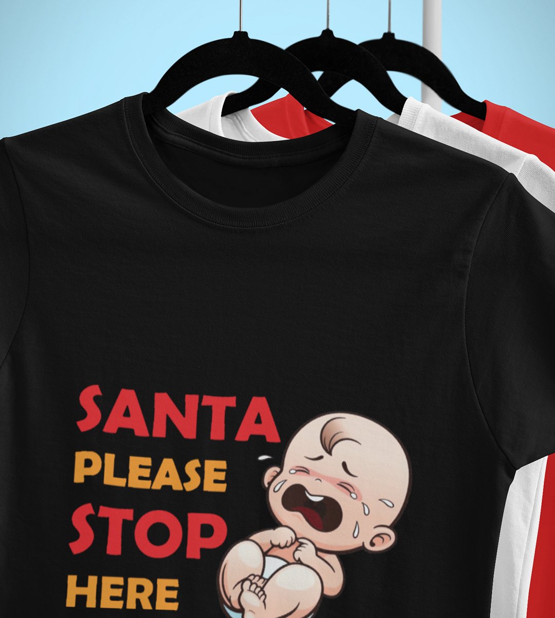 Baby Tears Over Santa(Black) Elegantly Printed T-shirt, Best Gift For Boys Girls