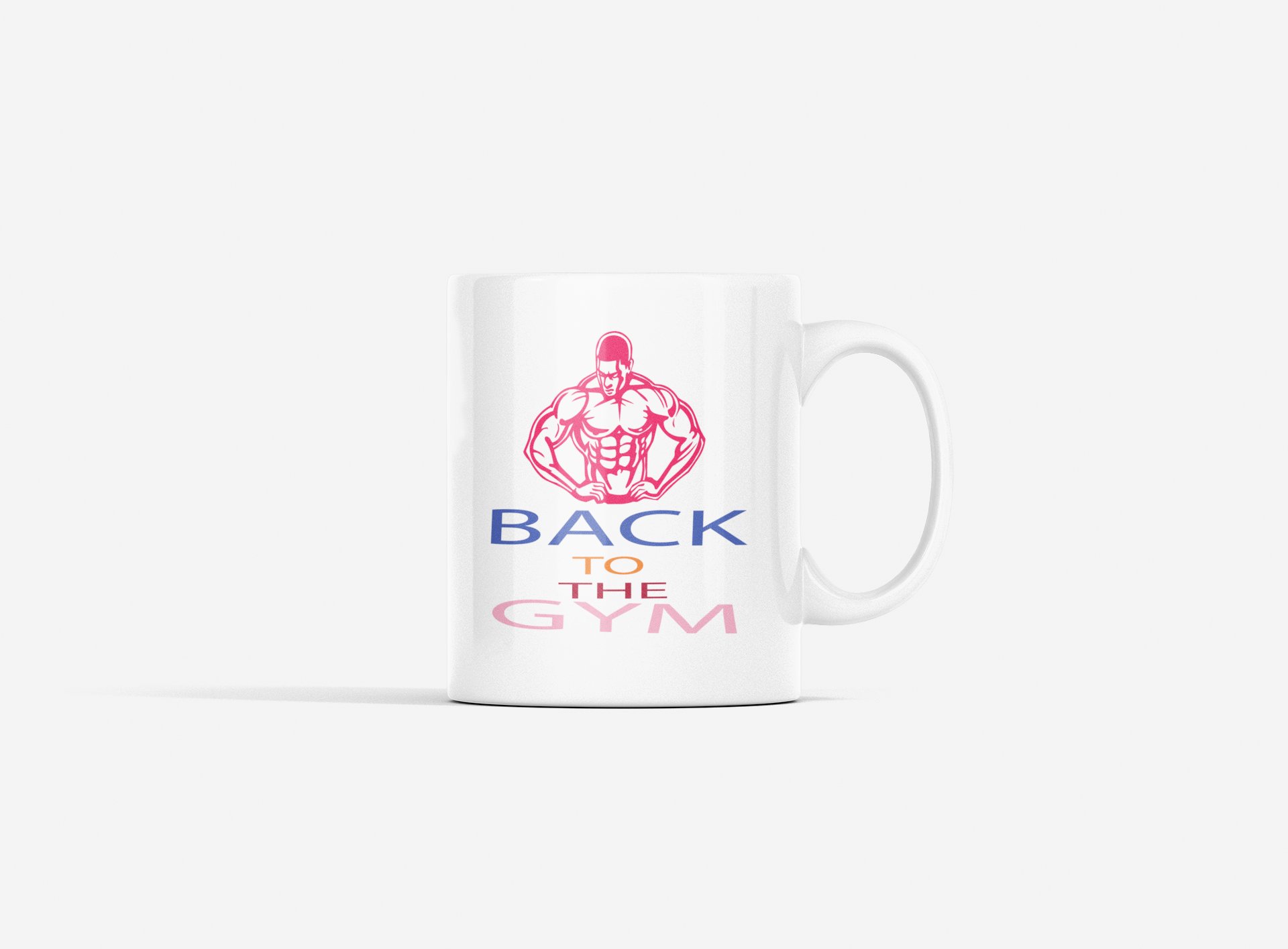 Back to the Gym, (BG Pink Muscle Man) - gym themed printed ceramic white coffee and tea mugs/ cups for gym lovers