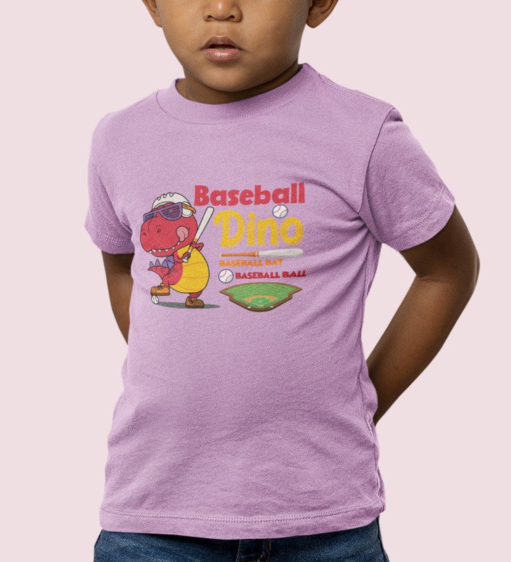 Baseballer Dino, Boys Round Neck Blended Cotton Tshirt