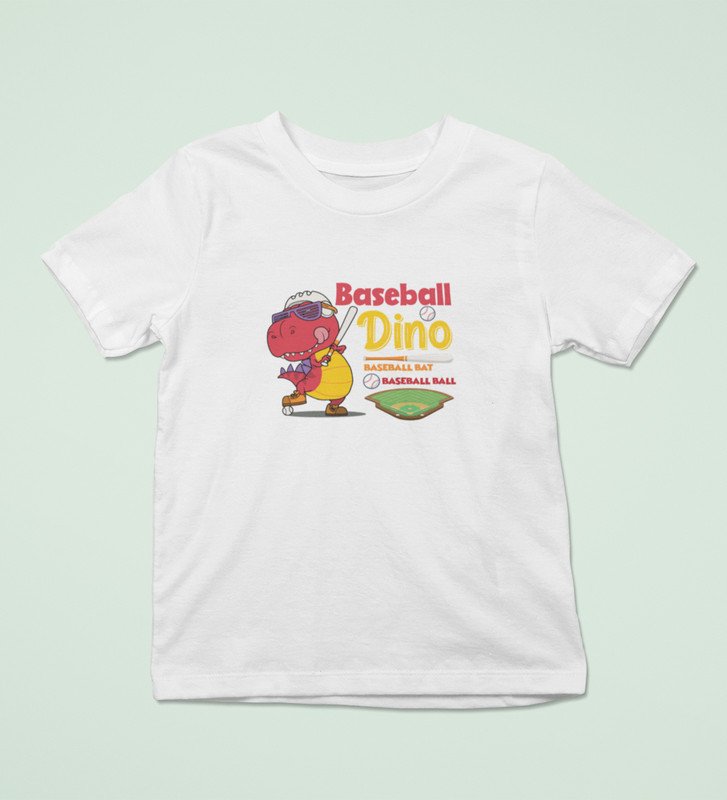 Baseballer Dino, Boys Round Neck Blended Cotton Tshirt