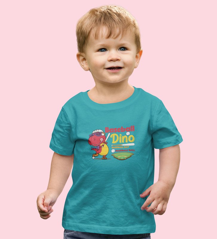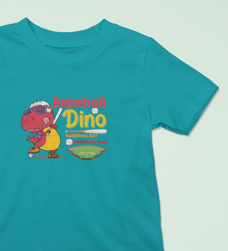 Baseballer Dino, Boys Round Neck Blended Cotton Tshirt (Red)