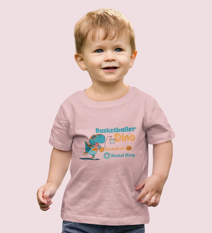 Basketballer Dino, Printed Cotton Tshirt (baby pink) for Boys
