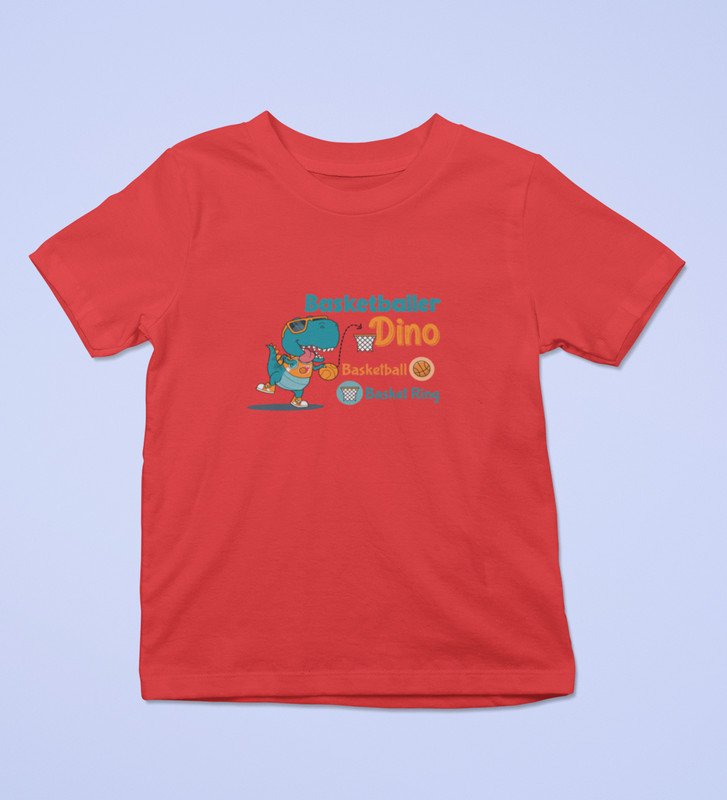 Basketballer Dino, Printed Cotton Tshirt for Boys