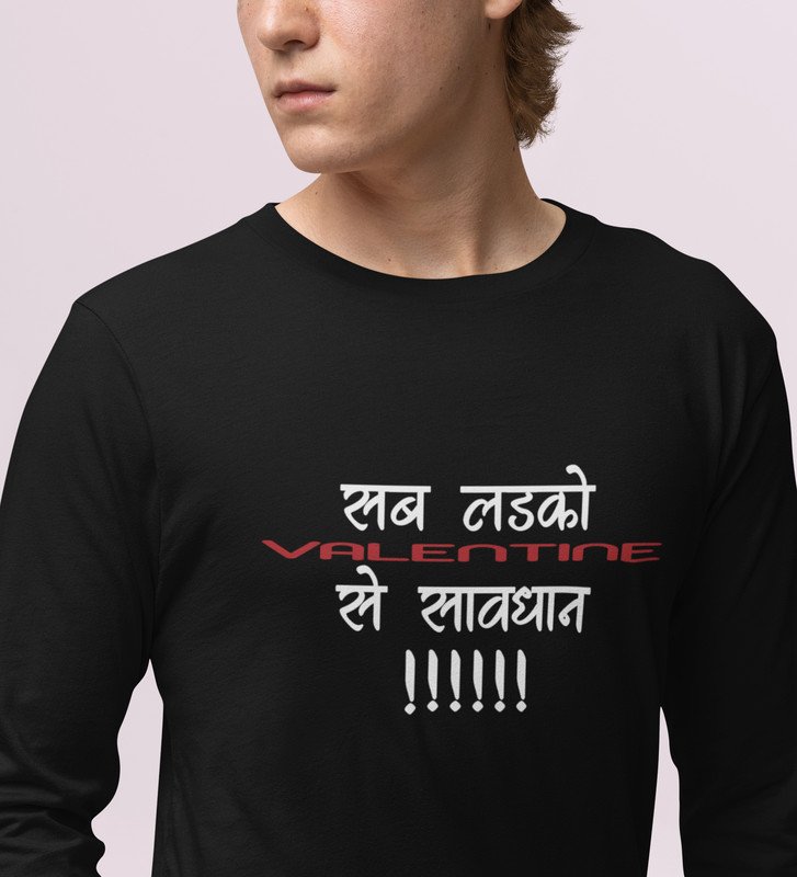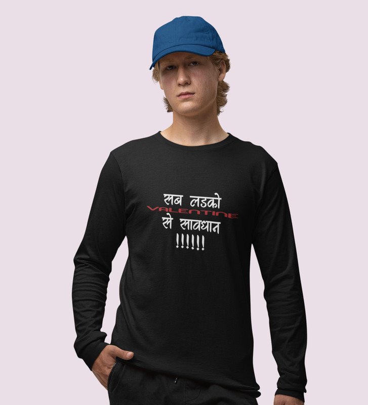 Be Aware: Printed (black) Full Sleeve T-Shirt For Singles