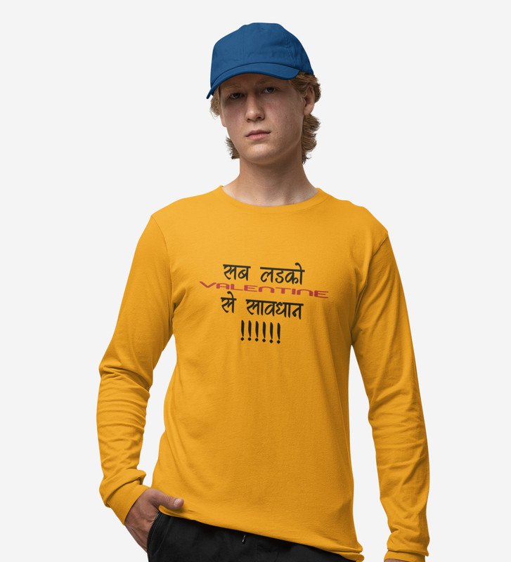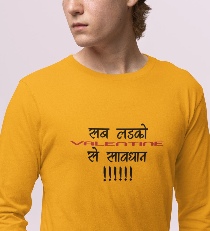 Be Aware: Printed (yellow) Full Sleeve T-Shirt For Singles