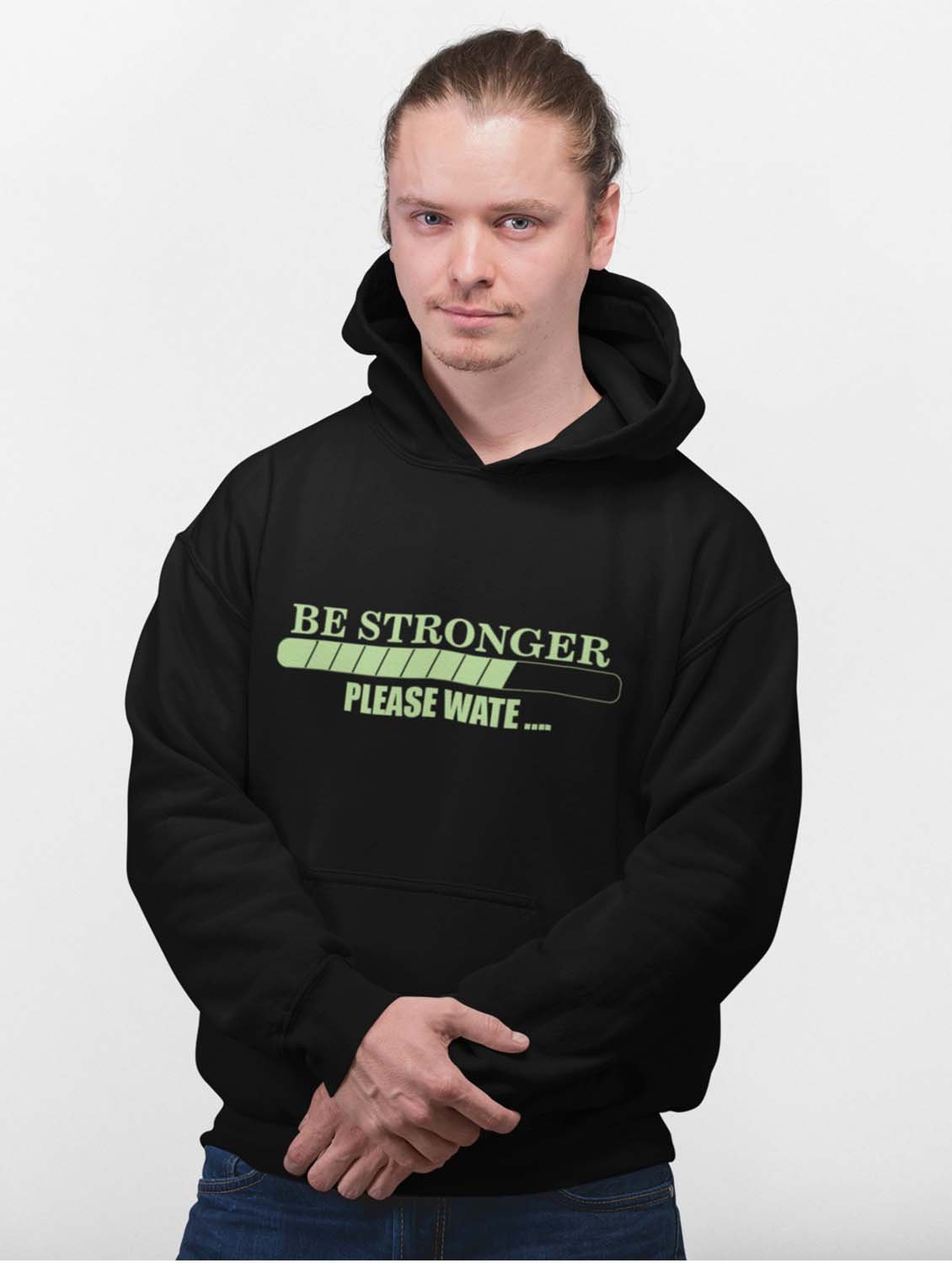 Be Stronger, Please Wait, (BG Green)printed activewear black hoodies for winter casual wear specially for Men