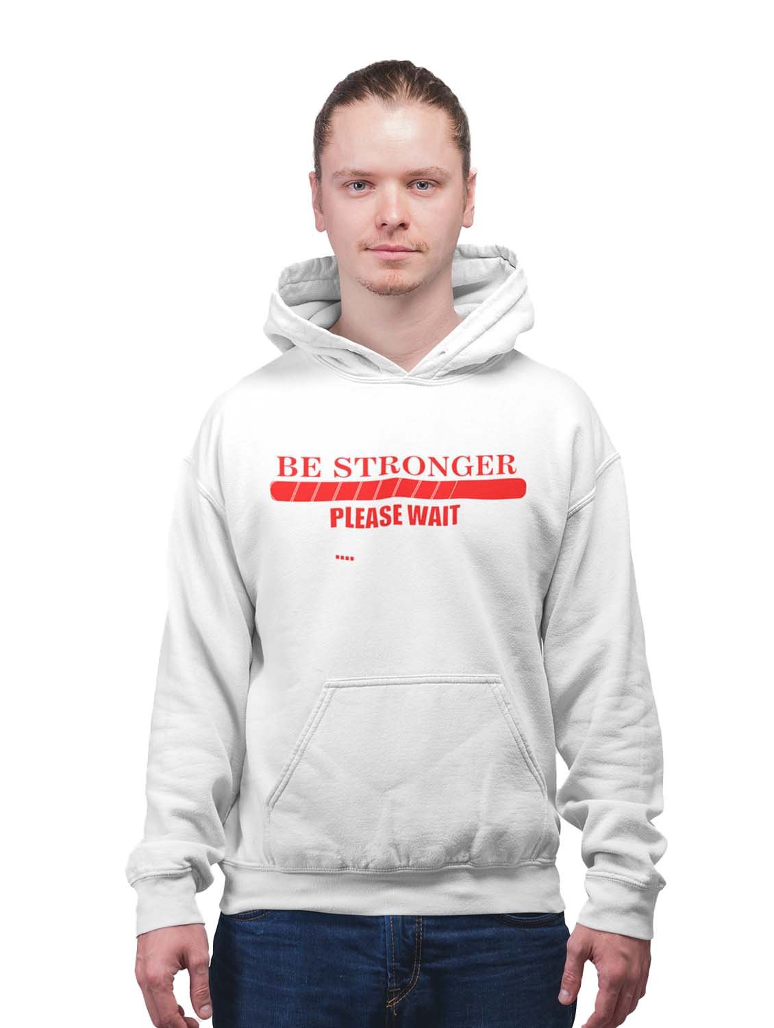 Be Stronger, Please Wait (BG Red)printed activewear white hoodies for winter casual wear specially for Men