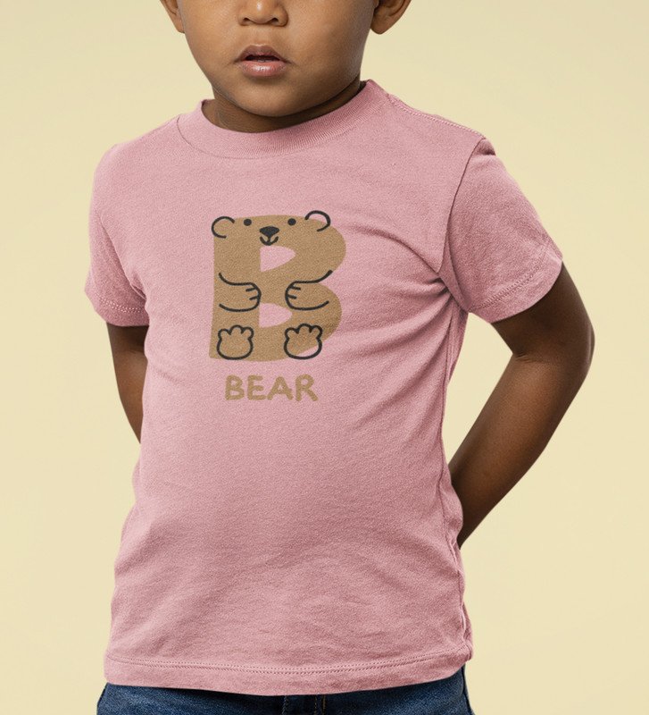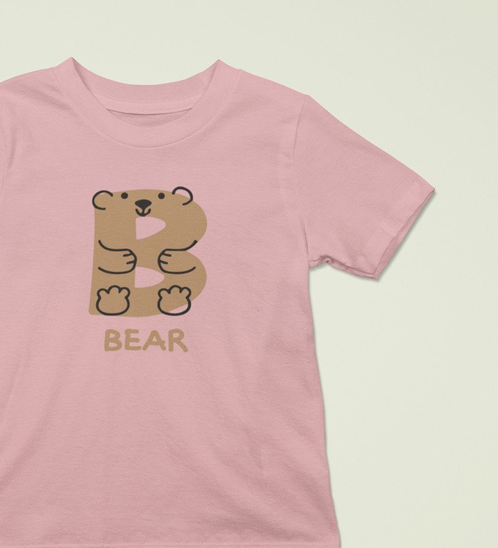 Beary bear, Printed Cotton Tshirt (Baby pink) for Boys