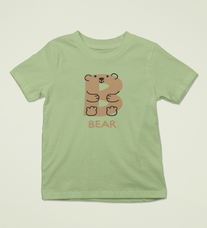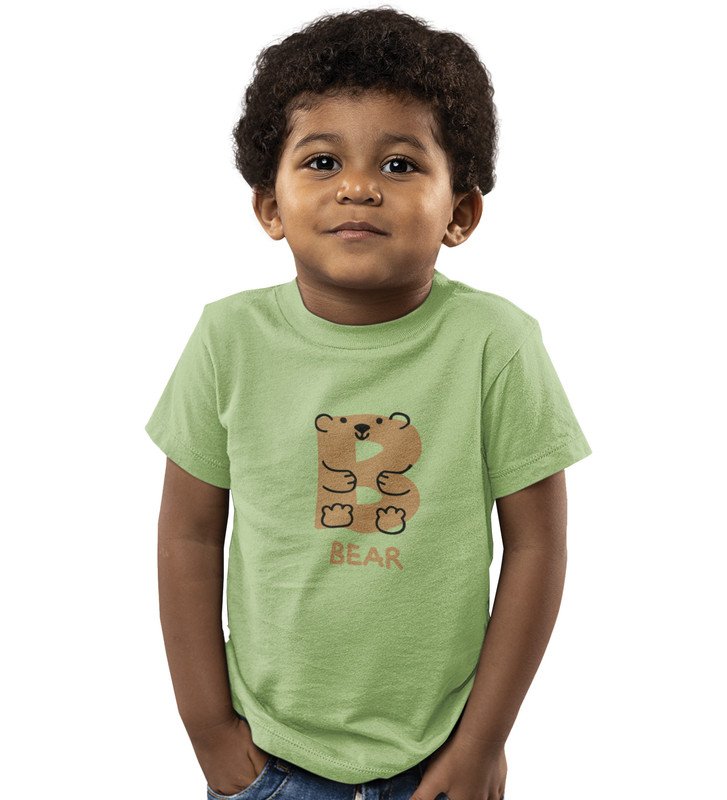 Beary bear, Printed Cotton Tshirt (Olive) for Boys