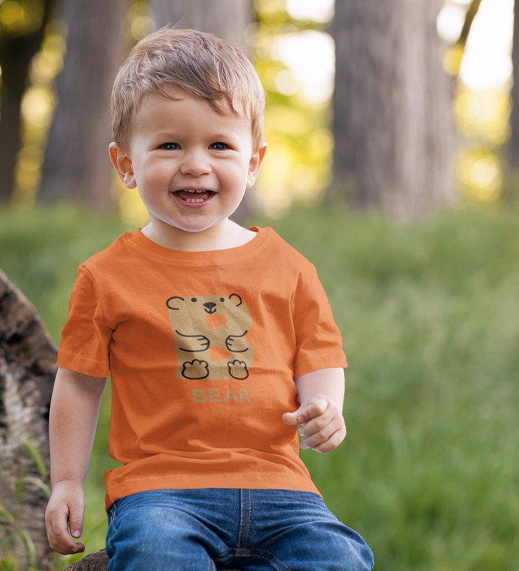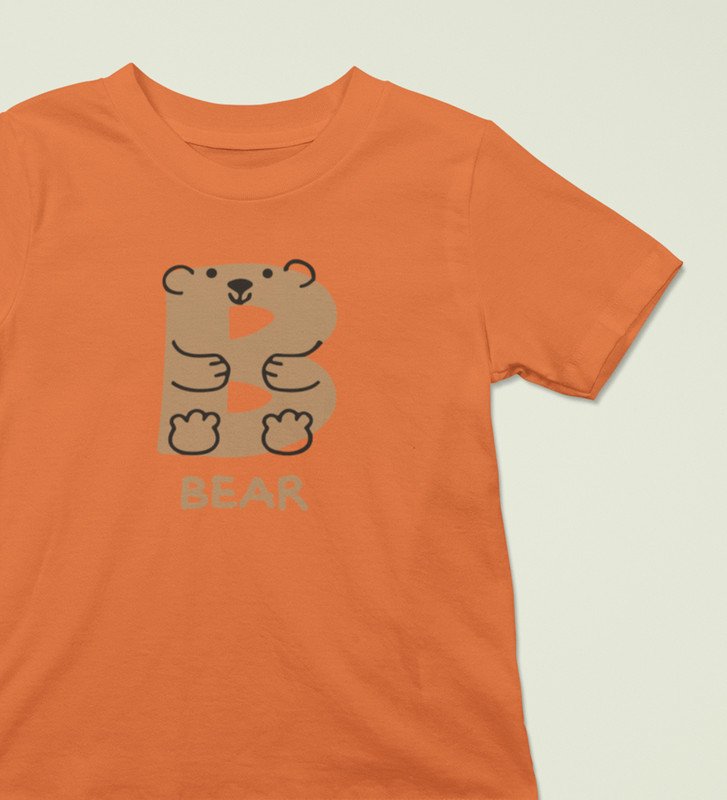 Beary bear, Printed Cotton Tshirt (orange) for Boys