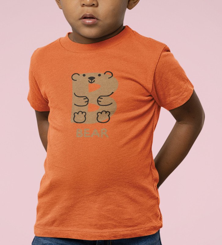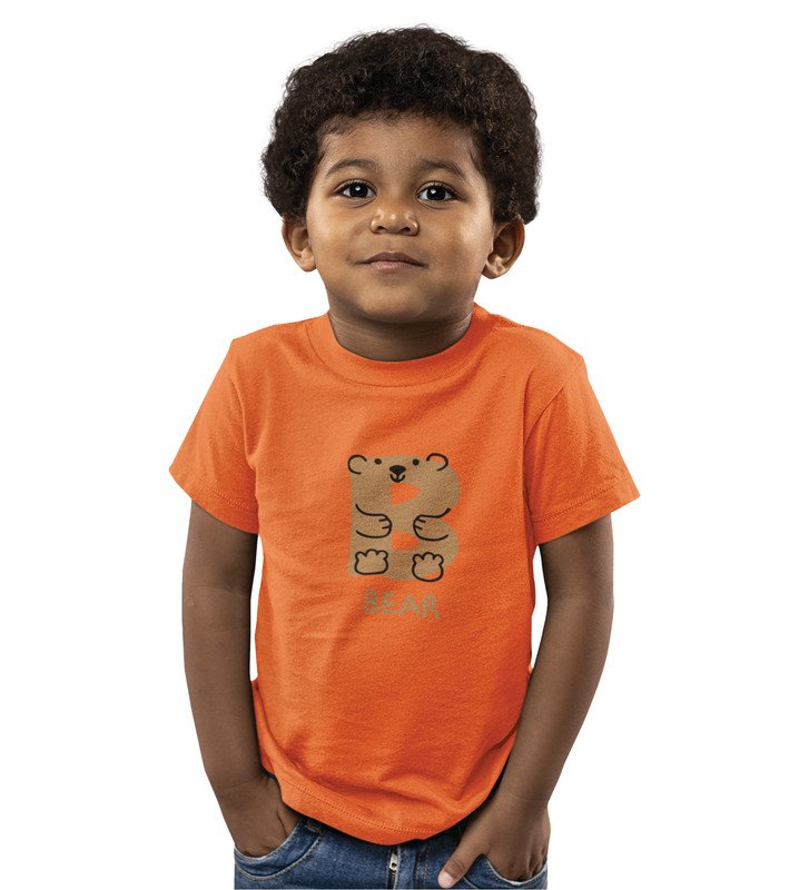 Beary bear, Printed Cotton Tshirt (Orange) for Boys